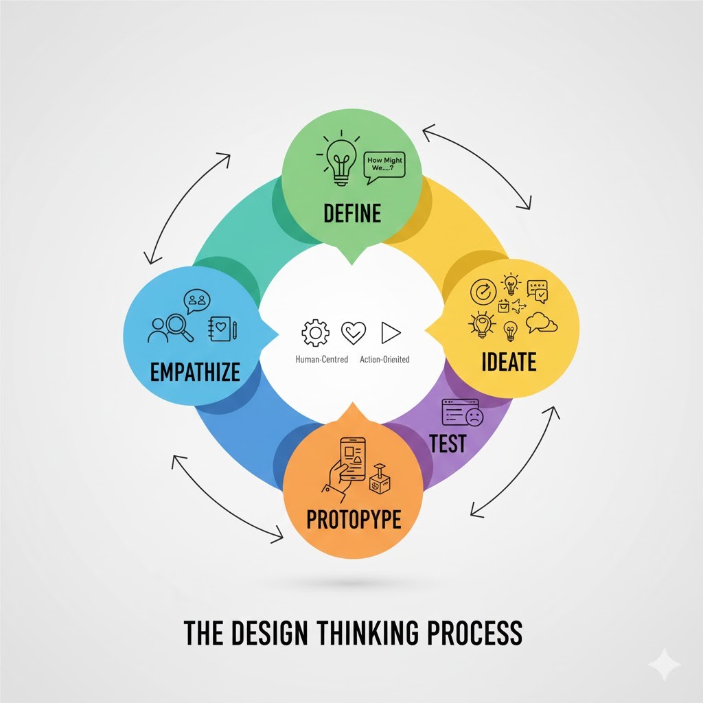 The Design Thinking process is a human-centered, iterative approach to problem-solving and innovation. It's widely used in design, business, and technology to develop solutions that are not only functional but also desirable and feasible.